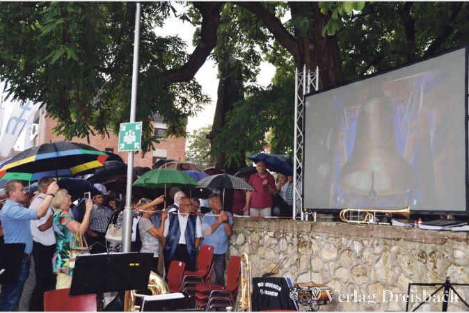 Mehr als 400 Flörsheimer hatten sich am Donnerstagabend,28. Juli, auf dem Gallusplatz versammelt, um das erste Läuten der beiden neuen Glocken im Gesamtgeläut nicht zu verpassen. Glockenfans aus ganz Deutschland und gar aus der Schweiz hatten sich ebenfalls auf dem Platz eingefunden, um das außergewöhnliche Ereignis digital festzuhalten, um dann in entsprechenden Internetforen über den Flörsheimer Glockenklang zu fachsimpeln. „Ich bin überglücklich. Habe Freudentränen in den Augen. Gloriosa klingt einfach wundervoll sanft“, so die Empfindungen von Glockengießer Hanns Rincker.