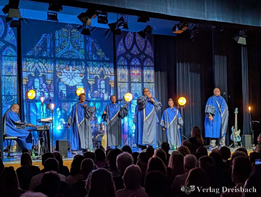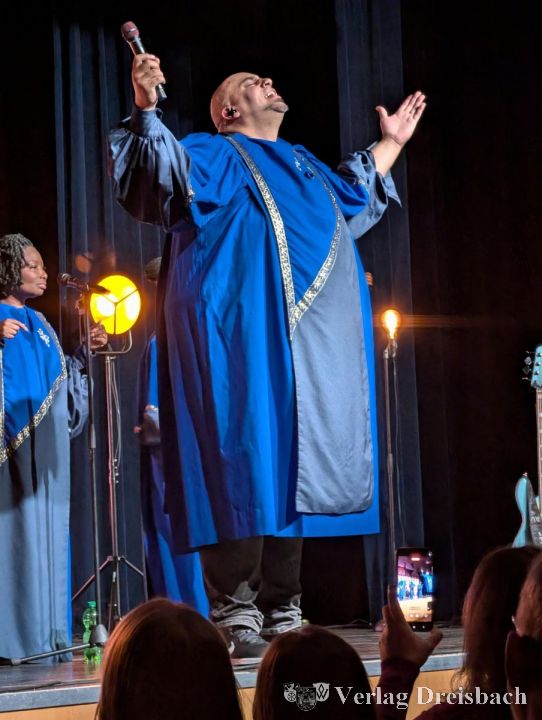 Die typischen Chor-Gewänder – blaue, elegante Gewänder, mit farbigen Akzenten – verstärkten den Eindruck eines authentischen Gottesdienstes, ohne in Folklore abzurutschen. Vielmehr entstand eine Mischung aus Professionalität und Bodenständigkeit, die den Kern der Gospelmusik sichtbar machte: die Verbindung von spirituellem Ausdruck, musikalischer Präzision und unmittelbarer Emotionalität.
