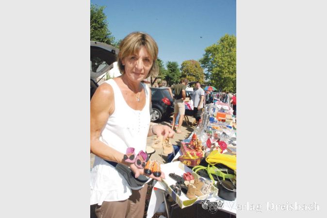 Ob rund um den Berliner Brunnen oder in den dichten Standreihen auf dem Konrad-Adenauer-Parkplatz, überall türmten sich Berge an Hausrat, Kleidung oder Spielzeug. Auf einem einzigen Schuhkartondeckel fanden sich beispielsweise ein halbes Dutzend handgemachter Puppenschuhe. Die Unikate im Miniformat entstammten dem Handwerk eines gelernten Schuhmachers und waren einmal Bestandteil eines Puppenladens. Heidi Ottermann führte fünf Jahre in der Grabenstraße ein kleines Puppenlädchen und bot dort handgearbeitete Puppen an. Ihr Bruder fertigte ihr als Schuhmacher für ihre ausgefallene Geschäftsidee viele Maßschuhe für die kleinen Lieblinge. Nach der Schließung des Geschäfts blieben einige der wertvollen Einzelstücke zurück, die nun auf dem Flohmarkt noch auf passende Puppenfüße warteten. Für 35 bis 40 Mark waren die Schuhe einmal im Laden zu haben.