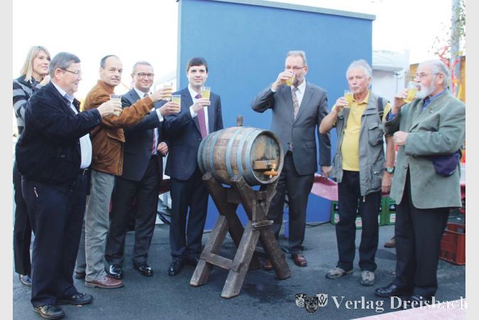 Zum Anstich des Äbbelwoi-Fasses waren nicht nur Bürgermeister Michael Antenbrink , Stadtverordnetenvorsteher Wolfgang Odermatt und der Vorsitzende des Flörsheimer Handwerker- und Gewerbevereines, Willi Lauck, in die Flörsheim Kolonnaden gekommen, um dort offiziell die neue Centerleitung der Firma CMde Centermanager und Immobilien GmbH, Robert Schulz und Ursula Ewen, zu begrüßen, auch CMde-Geschäftsführer Frank Röhlings ließ es sich nicht nehmen, bei dieser ersten Veranstaltung seiner Firma für die Flörsheim Kolonnaden dabei zu sein.