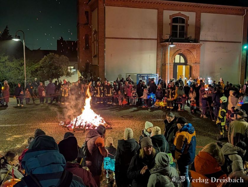 Nachdem die evangelische Pfarrerin Inghild Klodt die Martinskerze entzündet hatte, folgte der Moment, auf den viele Kinder gewartet hatten: Das große Martinsfeuer wurde entfacht. Die Flammen loderten in den dunklen Abendhimmel, Funken tanzten über den Platz, und die Wärme des Feuers erfasste die dicht gedrängten Besucher. Begleitet vom Musikverein sang die Menge noch einmal die bekannten Lieder.