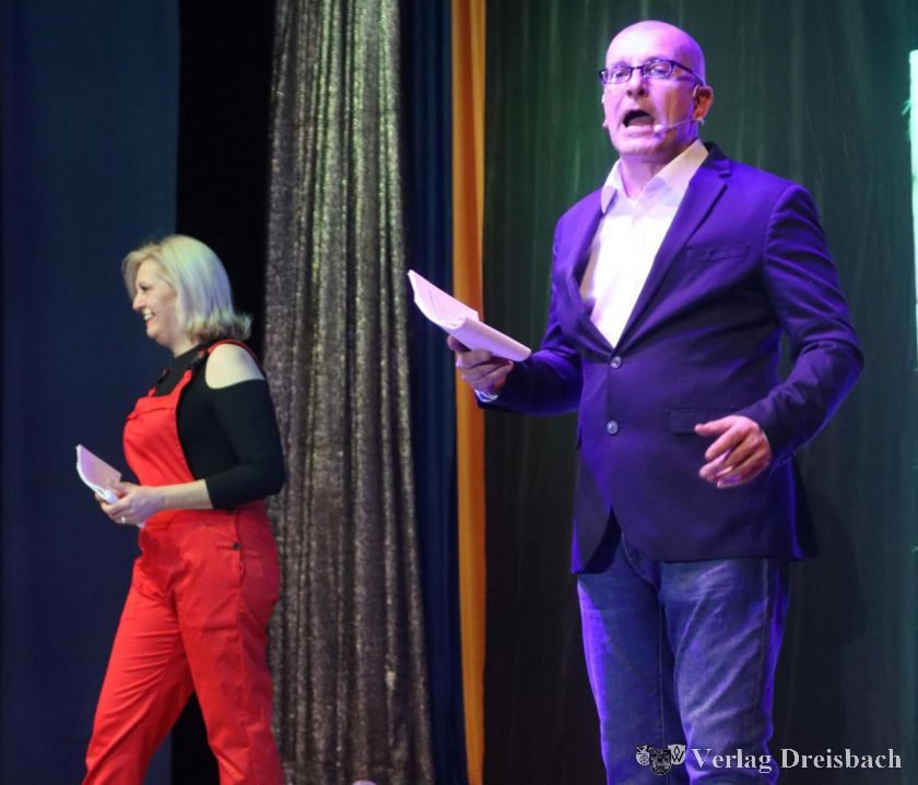 In diesen fünf Tanzformationen sind alleine rund 60 Mitglieder aktiv. Die langjährige Organisatorin der fastnächtlichen Aktivitäten des MGV Harmonie, Beate Lanz, schätzt, dass insgesamt gut 100 Personen in die Durchführung der Sitzungen eingebunden waren. Manche sind freilich auch mehrfach gefordert, wie Tanja Duchmann, die seit vielen Jahren zusammen mit Frank Haindl durch die Sitzungen führt. Der Moderationspartner wiederum ist traditionell auch für das Protokoll zuständig. Es ist der einzige Beitrag, in dem es auch mal politisch werden darf bei den Harmonie-Fastnachtern. Sein Fazit angesichts der unruhigen Zeiten: „Wenn schon Revolution, dann kommt Prinz Karneval auf den Thron.“
