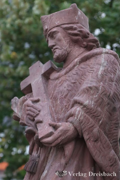 Auch, wenn man der Figur weiterhin ansieht, dass sie nicht frisch aufgestellt wurde, lassen vor allem die Abtragungen des größeren Algen- und Flechtenbefalls die Figur deutlich aufgefrischt auf die Weilbacher hinabblicken.