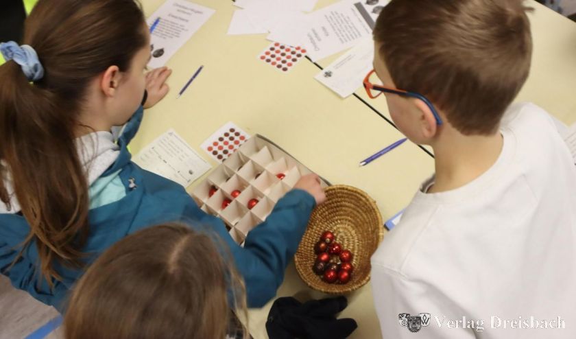 Dieses Jahr war in der Sporthalle eine Geschicklichkeitsaufgabe als dritter Teil zu erledigen. Kleine Christbaumkugeln, eine Hälfte in einem helleren, die andere Hälfte in einem dunkleren Rot gefärbt, mussten möglichst schnell, aber ausschließlich mit einer Hand Kugel für Kugel von ihrem Körbchen in einen Karton mit 25 Fächern umgebettet werden. Dies aber nach einem auf einer Aufgabenkarte vorgegebenen Muster, die verdeckt auf dem Tisch lag und erst mit dem Start der Stoppuhr umgedreht werden durfte. Die falsche Farbe in einem der Fächer gab einen satten Zeitaufschlag von 20 Sekunden bei den Erwachsenen und zehn Sekunden bei Kindern – also trotz des Kampfes gegen die Zeit besser noch mal überprüft, ob alles stimmt, bevor man die Stoppuhr anhält.