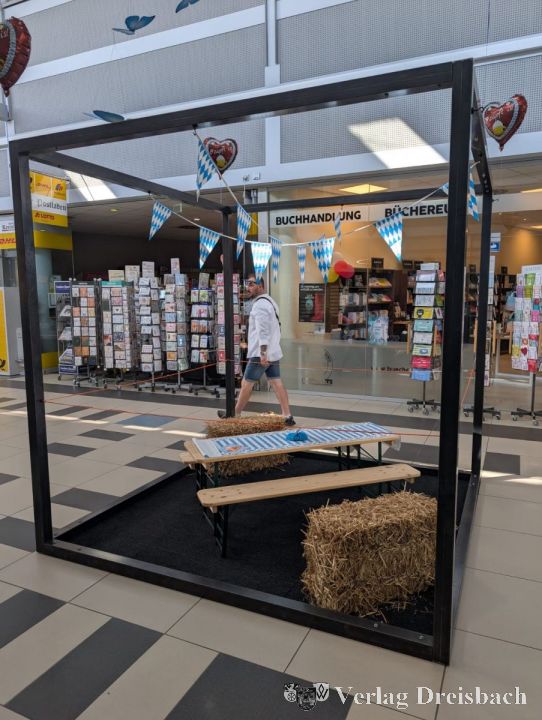 Schon beim Betreten der Passage stellte sich Oktoberfest-Atmosphäre ein. Mini-Bierbank, blau-weiße Dekoration und Strohballen sorgten für das passende Ambiente, während vor den Kolonnaden ein Festzelt den Rahmen abrundete. Auch kulinarisch wurde einiges geboten: Weißwürste, Laugenbrezeln und frisch gezapftes Bier luden zum Verweilen ein.