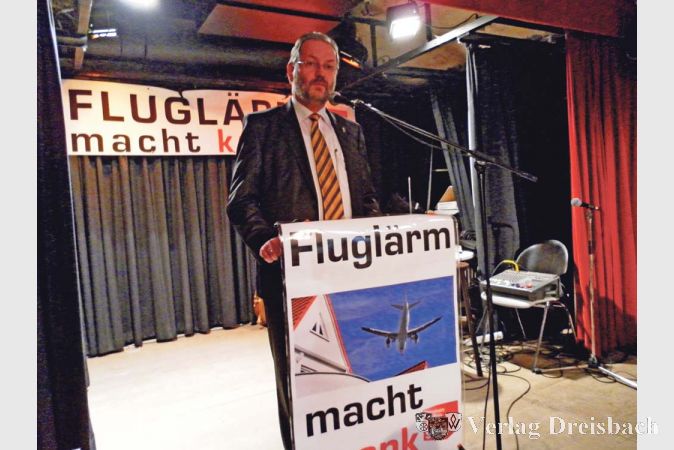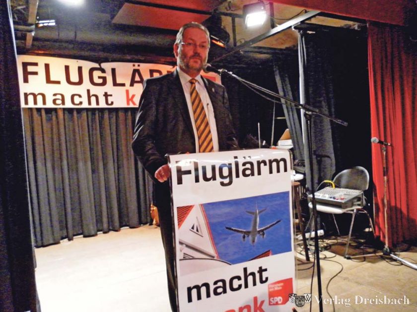 Hauptthema des Abends war jedoch der Fluglärm und das weitere Vorgehen gegen diesen. Dabei wurden vor allem Zusammenhalt und Solidarität als zentrale Aspekte gefordert, „auch wenn man für verschiedene Dinge kämpft“ unter den Fluglärm-Gegnern, so Antenbrink. Sowohl für den Bürgermeister als auch für Gastredner Jürgen Häfner, Staatssekretär des Innenministeriums Rheinland-Pfalz, gibt es die Lärmbelastung betreffend nur eine Lösung. „Das große Ziel muss eine dauerhafte, verlässliche Begrenzung des Fluglärms im Rhein-Main-Gebiet“ sein, erklärte Antenbrink. „Nur so haben wir eine Chance, unsere Heimat lebenswert und bewohnbar zu erhalten.“