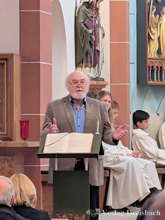 Für einen besonderen Akzent sorgte Hermann Remsperger, gebürtiger Weilbacher und heute in Wicker zu Hause. In seiner Ansprache gratulierte er Maria Himmelfahrt herzlich zum Jubiläum und schlug einen originellen Bogen zur Kirchengeschichte. Augenzwinkernd merkte er an, „dass sogar der Sankt-Lorenz-Strom einmal mitten durch den Weilbacher Altarraum geflossen sein soll“. Den Schwerpunkt seines Beitrags legte er jedoch auf eine Persönlichkeit aus der Region: den päpstlichen Prälaten Matthäus Müller (1846–1895). Müller, in Wicker geboren und 1873 in Limburg zum Priester geweiht, sei „pädagogisch ein Pionier der Heimerziehung, theologisch ein Netzwerker in der Sozialpastoral und finanziell ein kreativer Verwalter in Zeiten klammer Kirchenkassen“ gewesen. Er habe Missstände klar benannt und zugleich beherzt gehandelt. „Kein Wunder, dass aus gut unterrichteten Himmelskreisen zu hören ist, Matthäus Müller sei vom kritisch-konstruktiven Geist und der Tatkraft in Maria Himmelfahrt tief beeindruckt – ebenso wie Teresa von Ávila von diesem Kirchort am Weilbach“, so Remsperger. Seine Botschaft: Möge dies auch in Zukunft so bleiben.