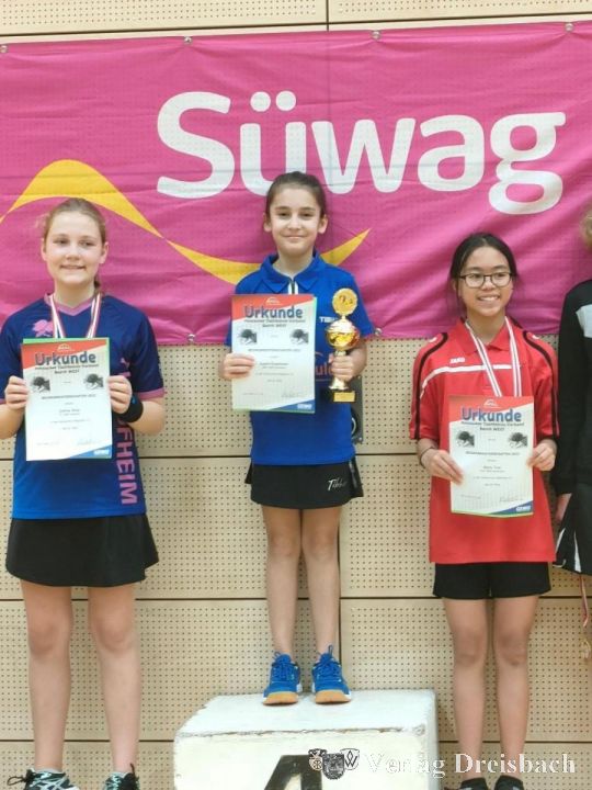 Ihre jüngere Schwester Jasmin war erfolgreicher und holte sich den Gruppensieg. Im Achtelfinale gewann sie 3:1 gegen Maya Hayes vom TV 1860 Hofheim, im Viertelfinale traf sie auf Flora Weck ebenfalls vom TV 1860 Hofheim. Leider hatte das Flörsheimer Tischtennistalent ihre Reserven nach dem anstrengenden Wochenende schon aufgebraucht und musste sich der späteren Siegerin geschlagen gegeben. Elsenheimer erspielte sich in dieser Konkurrenz einen überragenden 3. Platz.