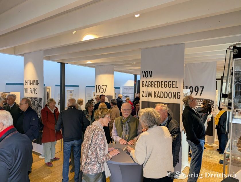 Hans Franssen dankte insbesondere den vielen ehemaligen Mitarbeiterinnen und Mitarbeitern der Rhein-Main-Wellpappe, die den Geschichtsverein mit Informationen und historischem Material versorgt haben. In Vorbereitung zur Sonderausstellung hatte der Geschichtsverein bereits im Juli zu einem "Erzähltreff" eingeladen. Die Idee dahinter war, einstige Angestellte zu befragen und diese zu bitten, von ihrem Berufsalltag zu berichten. Aus diesem Treffen ergaben sich viele wichtige Informationen und Klärungen, die nun auch in der Ausstellung ihren Niederschlag fanden.