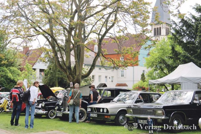 Wer sich lieber bedienen lassen wollte, fand Platz in den Cafés am Marktplatz, über den die Fahrzeuge, von den fachkundigen Kommentaren von Kurator Detlef Krehl begleitet, auf das Ausstellungsgelände einfuhren.