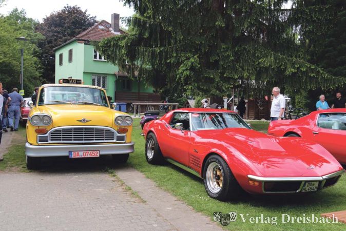 In entspannter „grüner“ Atmosphäre kamen Oldtimer-Enthusiasten natürlich auch leicht miteinander ins Gespräch: es wurde über Baujahr, Hubraum, Verbrauch und Chrompflege genauso gefachsimpelt wie über Ledersitze und Ersatzteilbeschaffung. Offenbar langjährige Teilnehmer, die sich schon gut mit den Gegebenheiten in Hattersheim auskennen, zelebrierten bei dieser Gelegenheit tatsächlich ein ausgiebiges Picknick neben ihren vierrädrigen „Schätzchen“ – je nach Stil des Oldtimers rustikal mit Barbecue oder mit dem Champagnerkühler auf dem Campingtisch.