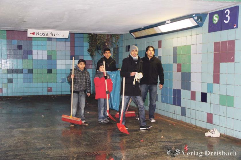 Auch wenn das Besen- und Schaufelschwingen auf den Hattersheimer Straßen eindeutig zu den anstrengenderen Arbeiten des „Waqar-e-Amal“ gehört, machten sich Mitglieder der Ahmadiyya-Gemeinde nach dem gemeinsamen Gebet und dem anschließenden gemeinsamen Frühstück in ihrem Gebetshaus am frühen Morgen eifrig daran, die blauen Müllsäcke zu füllen und dabei manch einem erstaunten Passanten ein freundliches „Frohes Neues Jahr“ zuzurufen. Ein älterer Hattersheimer beobachtete das Treiben der vielen Menschen mit Besen und Schaufel auf dem Marktplatz eine Weile und konnte sich dann doch die Frage nicht verkneifen: „Was machen denn die da?“ Die Erklärung, dass hier die Ahmadiyya-Gemeinde die Reste der Neujahrsfeiern beseitigt, auch um sich damit in der Stadt, in der sie leben, nützlich zu machen und dankbar zu zeigen, bringt ihn zum Strahlen: „Das ist ja mal was Gutes. An sowas hätte ich gar nicht gedacht!“