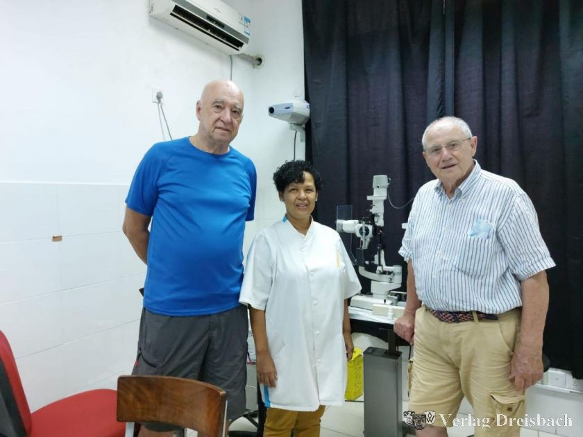 Bei ihrem persönlichen Treffen mit Dr. Pereira dankten die beiden Herren der Augenärztin im Namen der Spender und der Stadt Hattersheim am Main für ihr persönliches Engagement.