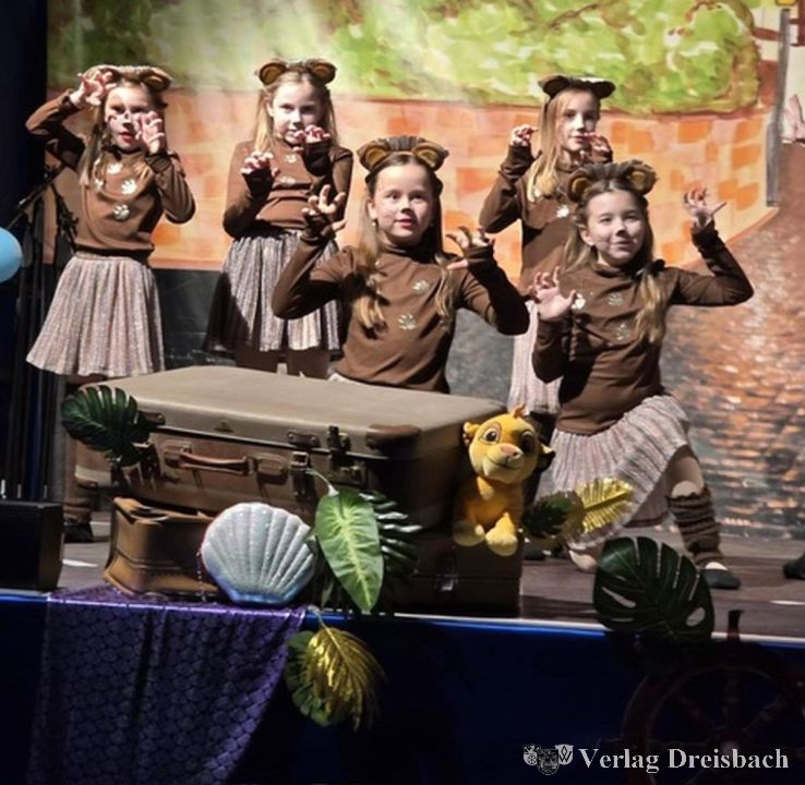 Durch das Programm führte wortgewandt Katja Leppert. Den Anfang machten die jüngsten Sänger und Sängerinnen im Alter von sechs bis zehn Jahren vom Liederkränzchen des Gesangverein Liederkranz Eintracht Eddersheim mit „Das rote Pferd“ mit niedlich selbstdekorierten Kostümen. Nach dem Protokoll von Stefan Häb und Wolfgang Dräscher eroberten die jüngsten Tänzerinnen des Vereins, die Sweetie Stars im Alter von sechs bis zehn Jahren mit ihrem „Tanz im Dschungel“, die Herzen der Zuschauer.