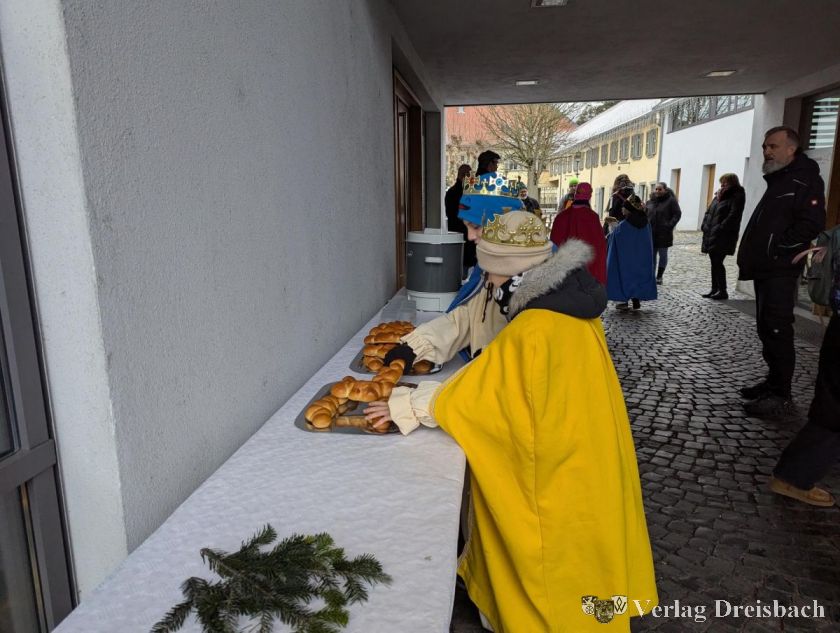 Zur Stärkung und zum Aufwärmen standen auch diesmal wieder jede Menge Weckmänner und heißer Kakao für alle bereit. Ein leckeres Angebot, von dem die Kinder nur zu gerne Gebrauch machten. Schließlich brachte Pfarrer Andreas Klee am Ende des Besuchs noch den neuen Segen an der Rathaustür an: "20*C+M+B+26" wird dort in den nächsten zwölf Monaten zu lesen sein.