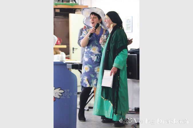 Nach einer fröhlichen Schunkelrunde und einer Pause kam Waltraud Pöschl, ebenfalls vom Liederkranz, als „gestresste Hausfrau“ zu den „Sachsehäusern“ – sie agierte am Bügelbrett mit „heißem Eisen“ gleichzeitig als „Chantal“ und als Gertrud, einmal mit einem „erregten“ oder „zu erregenden“ jungen Herrn und einmal mit ihrer Freundin, die ein Nussplätzchen-Rezept von ihr wollte. Was da am Ende in den „heißen Ofen geschoben“ wurde, konnten sich das Publikum nur unter lautem Lachen und Beifall vorstellen.