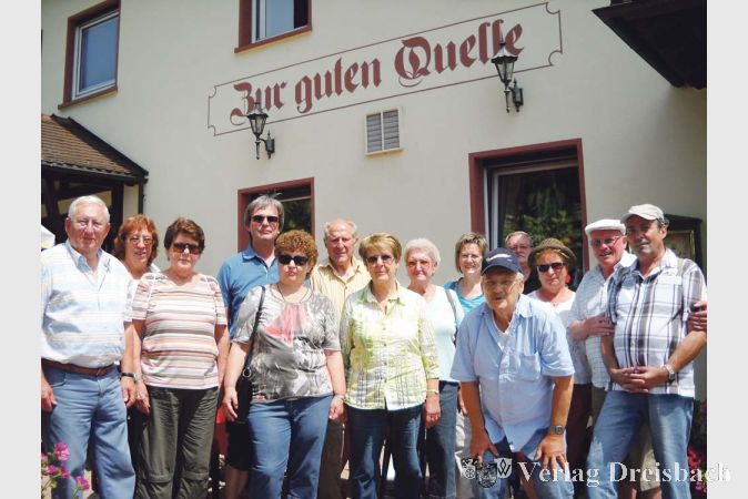 In Neuenhain „Zur guten Quelle“ wurden die Wanderer dann zur Mittagsrast erwartet. Im Garten unter großen Bäumen und Sonnenschirmen genossen dann alle die Ruhe und das leckere Essen. Die Freizeit-Wanderkarten wurden gestempelt, der nette Wirt schoss zum Abschied ein Foto von der lustigen Gruppe und erklärte einen schattigen Rückweg zum Parkplatz.