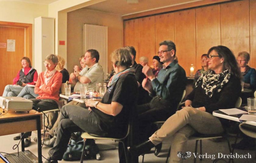 Sehr zum Vergnügen der Zuhörer hatte Frauke Richter „Kinder“ zum Thema des Abends gemacht, sie las dementsprechend auch aus Kinderbüchern vor. Dem Thema des Abends entsprechend standen auf den Tischen Schälchen mit Gummibärchen und süßen kleinen Brezeln bereit, dazwischen waren die bei Kindern und wohl auch bei Erwachsenen sehr beliebten „Schoko-Bons“ verstreut.