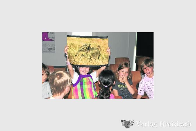Viele Fragen stürmten auf die Fotografin im Anschluss an die Lesung ein: Ob sie je Angst gehabt habe? Wann sie mit dem Fotografieren angefangen hat? Woher der Geländewagen kommt? Ob sie sich an ihr erstes Tierfoto in Afrika erinnert? Im Anschluss an die Lesung schenkten ihr die Kinder selbst geschriebene und illustrierte Tiergeschichten (Foto) – so was Besonderes hat die Autorin und Fotografin bisher noch nie erhalten.
