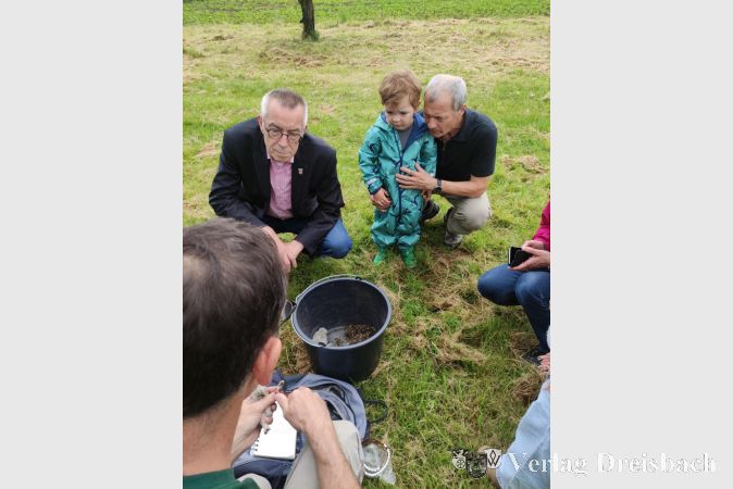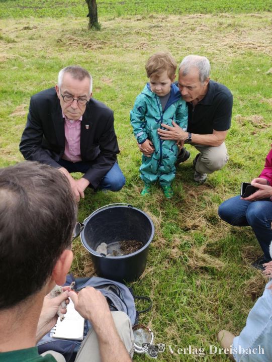 Zusammen mit seinen Kollegen Heiner Tecklenburg und Richard Hilgart hatte der Krifteler Vogelschutzbeauftragte Peter Krüger als Startpunkt diesmal auf ein Grundstück in der Gemarkung „Am Neuenberg“ eingeladen. „Umgangssprachlich reden wir bei dieser Gemarkung nur vom ‚unterem Hochfeld‘“, führte er aus. Eine besondere Freude war es, dass die Eigentümerfamilie Martens mit Enkel Aaron und Begleitung anwesend waren. „Ohne die Pflege der Streuobstwiese auf dem Grundstück mit altem Baumbestand würde eine wichtige Grundlage unserer Steinkauzarbeit fehlen. Und auch die vorgefundene gemähte Wiese ist eine hervorragende Grundlage für die erfolgreiche Jagd der kleinen Eulen“, lobte Peter Krüger, der die Gelegenheit nutzte, sich ausdrücklich bei allen Grundstückseigentümern für die Möglichkeit, im Sinne des Vogel- und Naturschutzes auf den Flächen tätig sein zu dürfen, bedankte.