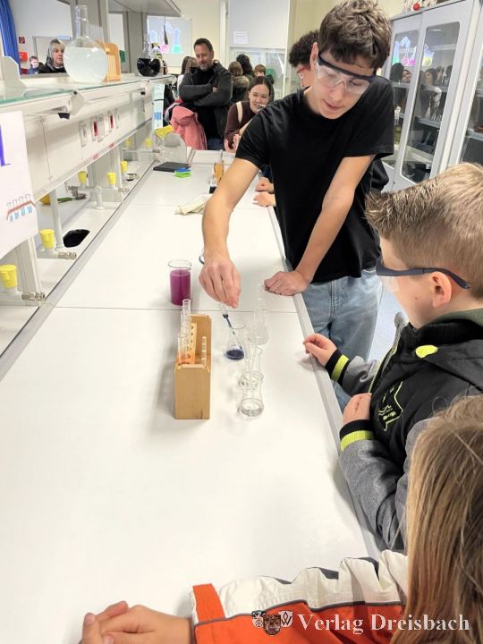 Besonderes Highlight war der naturwissenschaftliche Bereich. Aufgrund von vielen entsprechenden Projekten wurde die WGS vor kurzem offiziell zu einem MINT- Zentrum ernannt. Kinder experimentierten in Chemie, Physik und Biologie, begleitet von Schülern, die assistierten und die Experimente erklärten. In Chemie wurden Flüssigkeiten gemischt, Farben verändert oder Energie mithilfe einer sogenannten Zitronenbatterie erzeugt.