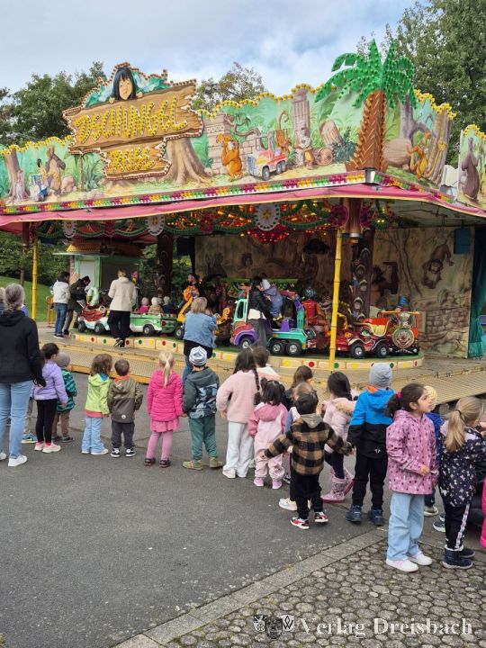 Am Kerbesonntag und -montag waren die Fahrgeschäfte auf dem Festplatz wetterbedingt leider nicht ganz so gut besucht. Am Dienstagmorgen kam aber die Sonne heraus, und so konnten die Kitakinder der Tagesstätte St. Vitus und der Kita Kinderträume die Freifahrt auf dem Kinderkarussell in vollen Zügen genießen.