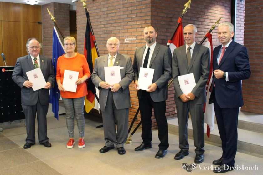 Vier Bürger und eine Bürgerin aus dem Main-Taunus-Kreis sind mit dem Ehrenbrief des Landes Hessen ausgezeichnet worden. Wie Landrat Michael Cyriax mitteilt, erhielten sie die Auszeichnung für ihr viele Jahre andauerndes ehrenamtliches Engagement in der Vereins- und Verbandsarbeit im Gastgewerbe, dem Sport, der Kultur und dem Kleingartenbau. Im Landratsamt überreichte Cyriax den Ehrenbrief an Wolfgang Bender (Kelkheim), Martin Grasser (Hattersheim), Ludwig Plättner (Schwalbach), Dr. Michael Reiter (Eppstein) und Ute Vogel (Flörsheim).