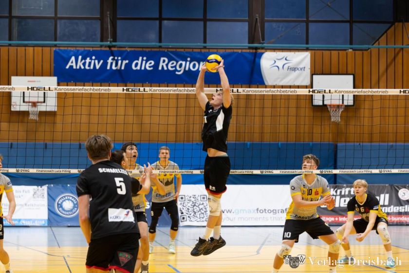 Ähnlich begann der nächste Abschnitt. Die Gäste führten zunächst mit 6:4. Schnell drehten die Krifteler die Partie. Durch eine starke Annahme von Thoralf Schmelzer (7 perfekte) konnte Zuspieler Jorris Müller sein Spiel nach Belieben aufziehen. Zudem tat sich Libero Florian Ruhm mit vielen starken Abwehraktionen hervor, die zu vielen Breakpunkten führten. Eine schnelles 13:7 war die Folge. Selbst einige Spielerwechsel auf Gegners Seite wirkten nicht. Dagegen zeigte der auf Krifteler Seite eingewechselte Arthur Breburda gleich Präsenz im Mittelangriff und Block. Die TuS brachte den Satz mit 25:19 sicher nach Hause.