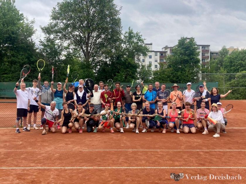 Mehr als 30 Teilnehmer waren angemeldet. Diese waren bereits vorher in faire Doppelpaarungen eingeteilt und trafen sich am Vormittag. Ohne Machete, aber mit Tennisschläger ging es dann los. Aufgrund der vielen Teilnehmer*innen wurde in zwei Gruppen nacheinander gespielt. Die jeweiligen Sieger*innen stiegen einen Platz auf, die Unterlegenen einen Platz ab. Nach den Platzwechseln trennten sich die Paarungen und wurden zu Gegnern um die nächste Runde auszuspielen. Somit konnten alle Beteiligten vier Runden in unterschiedlichen Paarungen mit jeweils anderen Gegnern spielen.