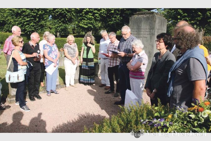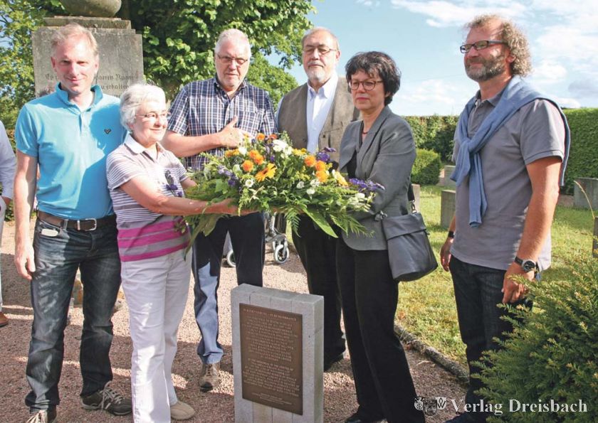Am Freitagabend, 1. Juli, ging es nach dem Empfang weiter auf den Friedhof zu einer Gedenksteinenthüllung. Die Tafel weist darauf hin, dass im Jahr 2007 an dieser Stelle, dem Gräberfeld der im Zweiten Weltkrieg beim Luftangriff auf Bischofsheim gestorbenen Bürger, einst ein Kranz zum Gedenken an die deutschen und englischen Kriegstoten niedergelegt wurde. Dies war der Wunsch des verstorbenen englischen Kriegsveterans Albert Killiner, den die freundschaftliche Verbindung, die über die Partnerschaft zwischen Bischofsheim und Crewe & Nantwich entstanden war, rührte.