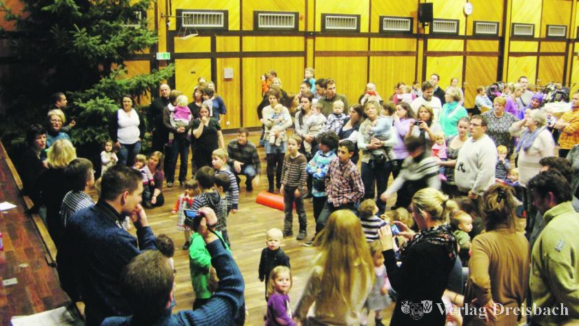 Diese erfreulichen Neuigkeiten wurden von allen Eltern und Kindern mit freudigem Applaus aufgenommen. Kurz darauf erschien der Nikolaus, der von dem weihnachtlichen Gesang der Eltern und Kinder angelockt wurde und verteilte auch dieses Jahr wieder tolle Buchpräsente, Spiele und Instrumente an die Kinder, die sich mit glänzenden Augen beim Nikolaus bedankten.