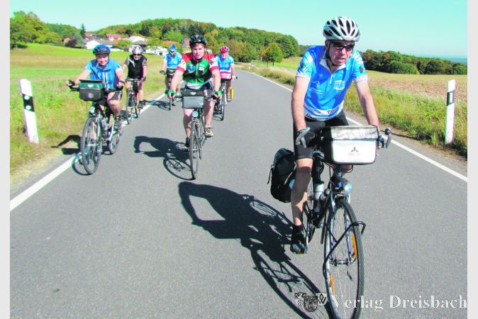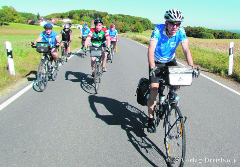 Natürlich gehörten zum Start ein paar Herbstnebel noch dazu, doch schon im Rodgau strahlte die Sonne vom blauen Himmel. Über Messel führte die Tour zum Odenwald und dort hinauf nach Böllstein. Jetzt wurde der Tag zu einer richtig schweißtreibenden Angelegenheit. Durch das Mossautal hinauf nach Olfen und hinunter zum Neckar nach Hirschhorn, die Euroradler ließen keinen Berg und keine Steigung aus, denn aus dem Neckartal ging es wieder hinauf nach Schönbrunn. Nach gut 120 Kilometern tat eine Kaffeepause bei frisch gebackenem Hefekuchen gut, aber der Tag war noch nicht zu Ende. Kleine Wege im Kraichgau, steil und eng, überall Fallobst auf den Wegen und herrliche Ausblicke über die Täler dominierten auf den letzten Tageskilometern.
