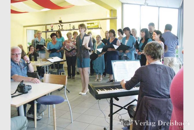 Nach dem Einsingen im Freien gab es eine erste Kostprobe des gemischten Repertoires der Sänger und Sängerinnen, denen man anmerkt, dass alle mit viel Herz und Stimme bei der Sache sind. Mit „Singen macht Spaß“ von Uli Führe wurde das Singen eröffnet, um dann anzuschließen mit „Can you feel the love tonight“ von Elton John, bei dem auch erst malig Gerhard Heisig, Katja Press, Michael Helmerich und Ulrike Keller solo sangen, um dann das erste Drittel abzuschließen mit „Father“ von Tore Wilhelm Aas.