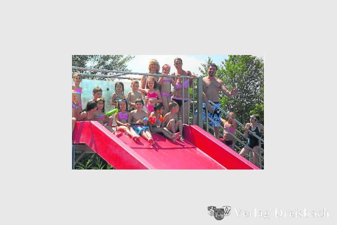 Die Schwimmhilfen wurden aufgeblasen und schon ging das Vergnügen los. Das Nichtschwimmerbecken gehörte den Kindern. Rutschen, Wettschwimmen, Schreien, Nassspritzen – alle genossen den Spaß.