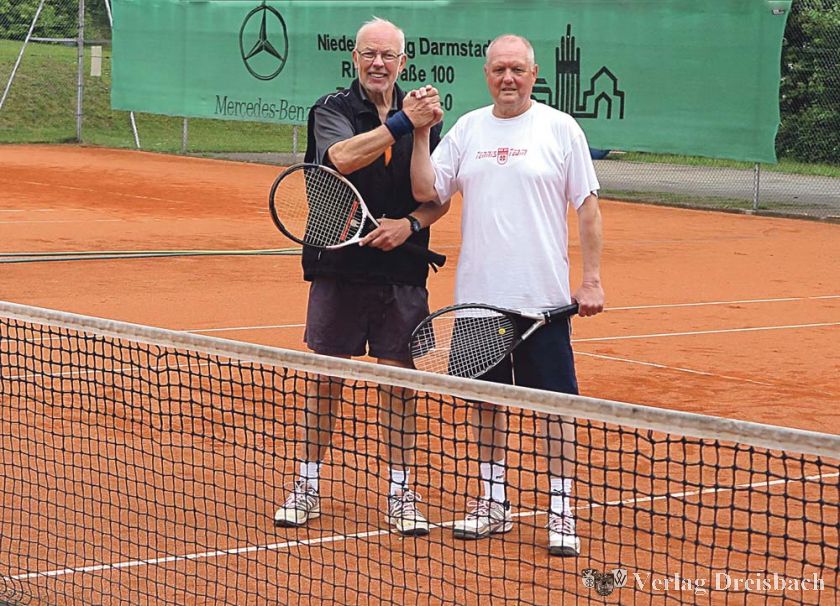 Auch die waren äußerst motiviert und gingen zielstrebig zur Sache: Karl-Heinz Emig punktete anschließend souverän mit 6:2 und 6:2 und Friedhelm Töpfer zeigte Nerven, wobei er einen 1:4-Rückstand im ersten Satz umbiegen und mit 7:5 für sich entscheiden konnte, um dann den zweiten Satz sicher mit 6:3 abzuschließen.