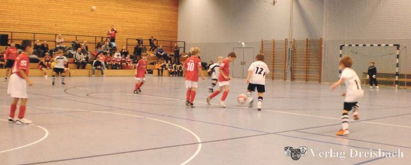 Zum Abschluss traten die E2-Mannschaften gegeneinander an. Für sie selbst etwas überraschend, errang die SVG Steinheim hier den Turniersieg. So meinte die zehnjährige Nina vom Turniersieger kurz nach der Siegerehrung: „Das kommt bei uns auch nicht oft vor, dass wir Erster werden.“ Wie alle teilnehmenden Kinder erhielt auch Nina eine Medaille und die Siegerteams noch einen Pokal für die Vereinsvitrine. Ebenso gut bei den Mannschaften kam an, dass auf jeder Urkunde ein Mannschaftsfoto der jeweiligen Mannschaft aufgedruckt war und dass bei jedem Treffer, der erzielt wurde, eine kurze Musik angespielt wurde. Teilweise ließ sich der eine oder andere Spieler zu einem kleinen Tänzchen auf den Parkett hinreißen.