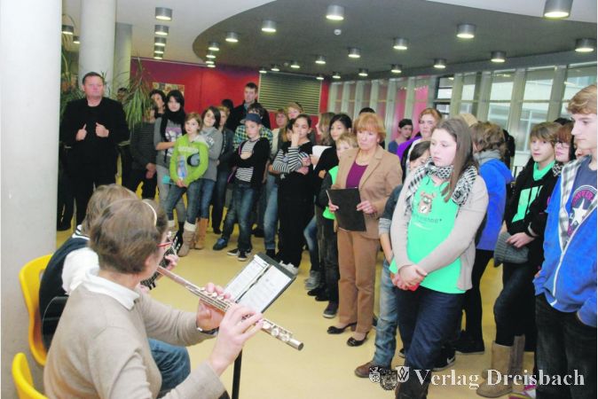 Zehn Werke schafften den Weg in die Schule und wurden für die erste gemeinsame Ausstellung zurechtgemacht. „Die Schüler halfen beim Rahmen und fertigten Untertitel“, erklärte Reinelt. Auf einer großen Tafel waren am Donnerstag auch viele weitere Gedanken der Schüler, die beispielsweise mit Zivilcourage auch Mut, genaues Hinschauen und Tapferkeit verbinden, zu lesen. Schulleiterin Brigitte Wagner-Christmann erklärte, dass Sophie Scholl stets nach ihrem Leitgedanken „man muss etwas machen, um selbst keine Schuld zu haben“, gehandelt hätte. Fäuste seien dabei aber kein Mittel der Wahl, die Schüler sollten hingegen friedlich für Gerechtigkeit kämpfen und mutig Stellung beziehen. Eine Schule habe die Aufgabe, ihre Schüler nicht nur mit Wissen vollzupacken, sie müsse auch mit der Seele arbeiten. Im Kunstunterricht gebe es den Raum für diese wichtige Arbeit. Deshalb gehe das Künstlerprojekt für die Achtklässler auch in eine zweite Runde. Dann jedoch würden die Schüler selbst künstlerisch tätig werden, indem sie nämlich in der Werkstatt von Thomas Reinelt Drucke anfertigen könnten. Die Erzeugnisse sollen dann in einer Ausstellung der Öffentlichkeit gezeigt werden.