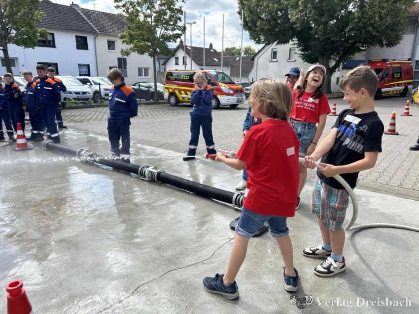 Die Ferienspiele bieten jedoch nicht nur den Kindern jede Menge Spaß. Sie nutzen auch den Vereinen. „Klar zeigen wir hier auch, was wir bei der Feuerwehr so alles machen und hoffen den einen oder anderen für die Feuerwehr zu begeistern“, sagen die Kameraden. Elf Helfer der Einsatzabteilung und acht aus der Jugendfeuerwehr sind als Betreuer vor Ort. Verschiedene Stationen sind auf dem Hof und im Feuerwehrgerätehaus aufgebaut.