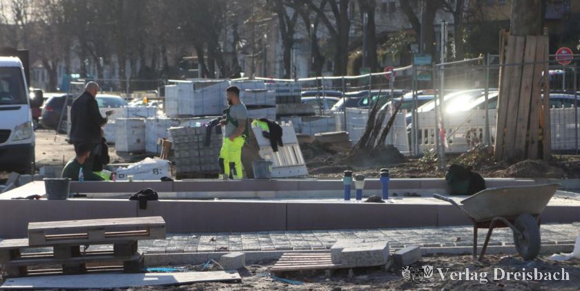 Eingeplant ist, dass die Endstation des Rundgangs bei einem größeren Hochwasser versinkt: das Mainufergelände mit der Parkplatzfläche, die sich in der Endphase der Neugestaltung befindet. Im Laufe des Frühjahrs soll sich die Baustelle am Ufer zurückziehen, nur noch der Bereich des Berliner Brunnens bleibt länger erhalten, denn das Bauwerk muss gegen die ursprüngliche Planung neu aufgebaut werden.