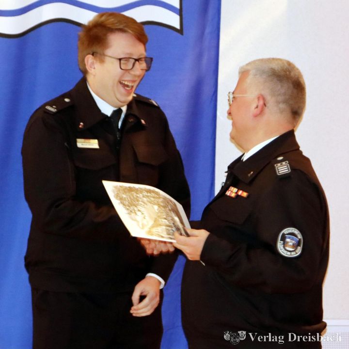 Die Führungskräfte der Flörsheimer Wehren hatten nach den Reden jede Menge zu tun, um die zahlreichen Urkunden, Nadeln und Schecks für die Beförderungen und Auszeichnungen in den verschiedenen Kategorien an den Feuerwehrmann und die Feuerwehrfrau zu bringen. Mehrfach durfte oder musste dabei Kaschels Vorgänger Peer Neugebauer vortreten. Er durfte unter anderem das "Brandschutzverdienstzeichen in Silber" des Landes für seine langjährige Tätigkeit als Stadtbrandinspektor und Stellvertreter aus der Hand von Kreisbrandinspektor Kai Beuthien entgegennehmen. Die Beförderungen im Einzelnen: