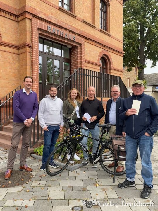 „Wir wollen damit den Teamgeist hervorheben, da das Stadtradeln schließlich nicht nur auf Ergebnisse ausgelegt ist“, so Bürgermeister Dr. Bernd Blisch zur Kampagne, an der die Stadt Flörsheim am Main zum 12. Mal teilnimmt. Blisch überreicht die Gutscheine an Ulf Mergheim, der seine aktive Teamfamilie zur Übergabe mitgebracht hat, sowie Klaus Göndöcs verbunden mit dem Dank für ihre Teilnahme und der Hoffnung auf ein Wiedersehen im nächsten Jahr.