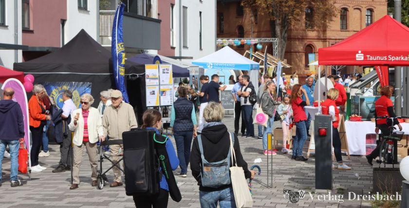 Und weil auf dem Parkplatz zur Bahnhofstraße eine Bühne mit zahlreichen Sitzgarnituren aufgebaut wurde, war der T-förmige Platz gut gefüllt mit Anbietern. 21 Unternehmen stellten auf dem Platz aus, dazu kamen als gemeinnützige Organisationen der Lions Club Hochheim/Flörsheim sowie die Freiwillige Feuerwehr und der DRK-Ortsverein. Am Samstag schob der Mehrgenerationentreff zudem eine Art „Tag der offenen Tür“ ein, wo die einzelnen dort untergebrachten Einrichtungen wie der Seniorentreff und der Prävenationsrat Interessierten zeigten, was sie so machen.