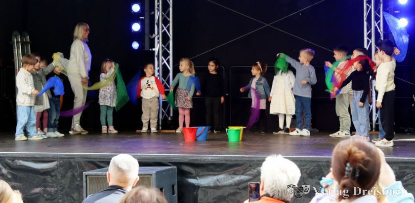 Am Samstag stand neben den Angeboten der Stände das Geschehen auf der Bühne im Mittelpunkt. Der Flörsheimer Musikverein übernahm den Part, die passenden Töne zum Frühschoppen zu bieten, am Nachmittag zeigten die Kinder der Kita Mainturm, wie sie sich zu Musik bewegen. Auch die Tanzgruppen des FNC sind immer für Auftritte zu haben, schließlich sind es keine zwei Monate mehr bis zum 11.11.