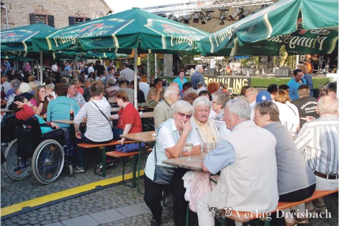 Am Abend gab die Bühne auf dem Platz wieder den Ton an, spielte doch die Party-Dance und Cover Band „Schilling“ aus dem Spessart. Bis in die Nacht hinein nutzten die Festbesucher die Gelegenheit, einen trockenen Sommerabend bei Cocktails, Wein und Co. zu genießen.