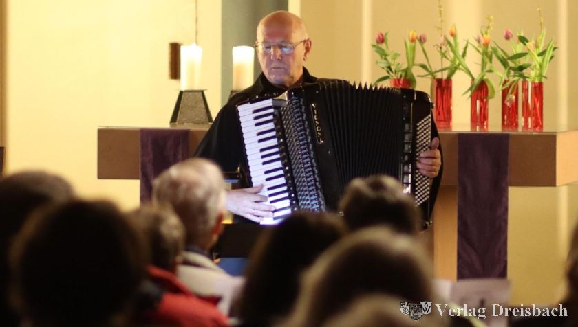„Von Klassik bis Astor Piazzolla“, lautete der Untertitel des Konzerts, denn die Spannweite der Komponisten reichte vom italienischen Sangesmeister Giulio Caccini (1551-1618), der fast 300 Jahre vor der Erfindung des Akkordeons wirkte, bis zum 1940 geborenen, zeitgenössischen Komponisten Yuri Peschkov, aber eben auch Piazzolla (1921-1992), einem argentinischen Bandoneon-Meister und Tango-Komponisten.