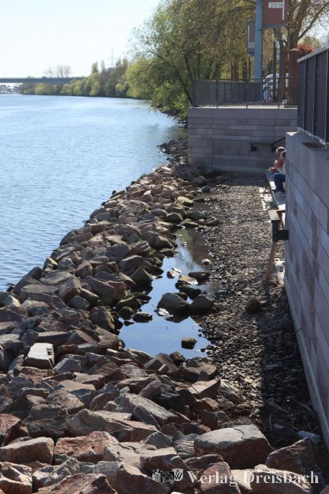 Einen Schritt weiter waren die Umgestaltungsarbeiten am Flörsheimer Mainufer pünktlich zum Ansturm österlicher Spaziergänger: Am Gründonnerstag wurde die spannendste Neuerung, die die Planungen hergaben, zum Erkunden und Chillen freigegeben. Der Treppenabgang zum Main mit eingebauten Sitzbänken unterhalb des Berliner Brunnens kann seit den Ostertagen genutzt werden und hat sich an den vergangenen sonnigen Tagen sofort als beliebter Treffpunkt für Eisschlecker und Pausenmacher etabliert.