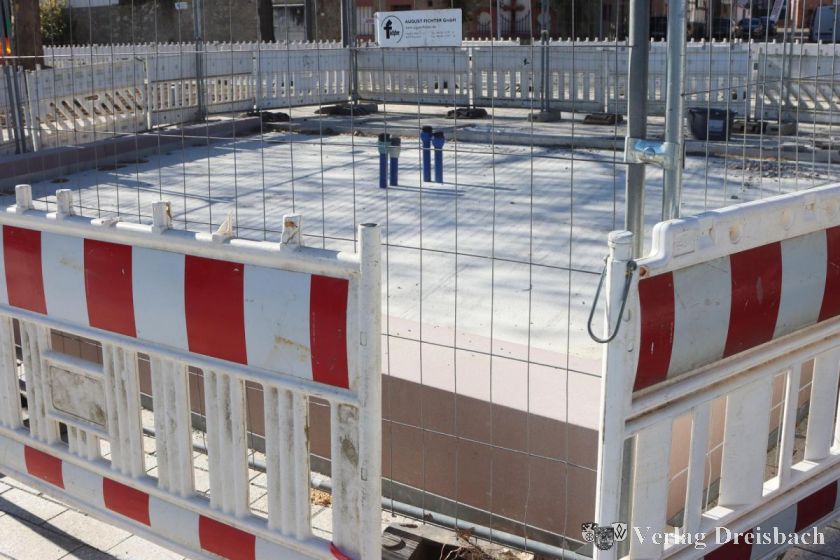 Der Berliner Brunnen oberhalb des eindrucksvollen neuen Mauerwerks im Treppenbereich ist noch nicht zurückgekehrt. Wohl aber ist die neue Betoneinfassung samt Sandsteinrahmen fertiggestellt. Die wurde notwendig, weil die Fläche, anders als bei der bisherigen Gestaltung, zum Treppenabgang hin abfällt. Der Aufbau des Brunnens und die neue Einfassung wird die im Frühjahr 2024 begonnenen Arbeiten abschließen, solange wird es auch auf den Parkplatzflächen wegen der großräumigen Absperrungen noch Einschränkungen geben, danach stehen auf der gesamten Breite 180 kostenfreie Stellplätze zur Verfügung – ein paar weniger als vor der Umgestaltung.