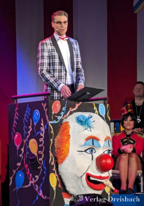 Jung, der in seiner Rolle als Zirkusdirektor das Programm leitet, begeistert ebenfalls als Musikclown. Mit seinen humorvollen Liedern am E-Piano verbreitete er eine ausgelassene Stimmung unter den Besuchern. In seinem Vortrag skizziert Jung eine chaotische Zugfahrt mit der Deutschen Bahn voller Pannen und Absurditäten. Seine Anekdoten über verlorene Waggons, verwirrte Zugbegleiter und eine überraschende Begegnung mit einem stark veränderten Studienfreund lösten schallendes Gelächter im Saal aus. Dabei ließ er mit einem ironischen Unterton kein Klischee über die Tücken der Deutschen Bahn aus.