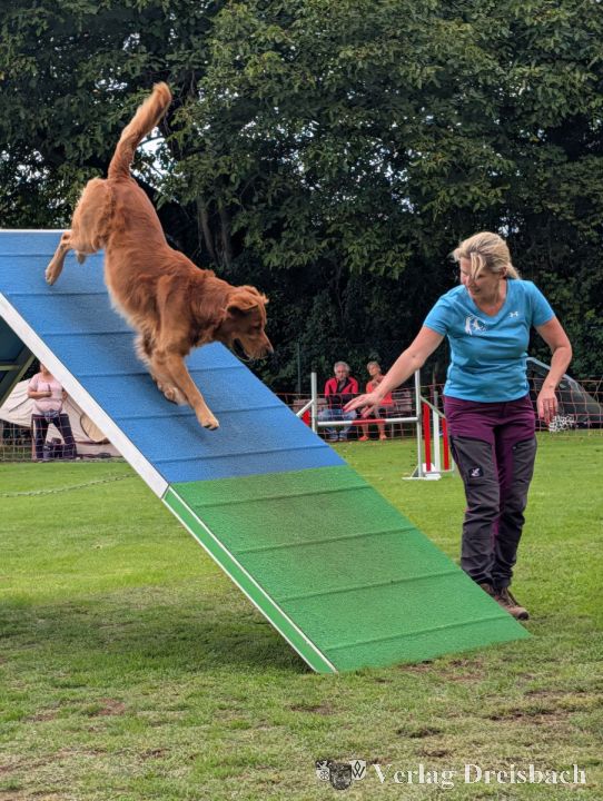 Agility gilt als Teamarbeit in Perfektion. Die Teams mussten Hürden, Tunnel, Slalomstangen und die berühmte A Wand überwinden – ein Hindernis, das besonders hohe Konzentration verlangt. Sie gilt als besondere Herausforderung, denn nur wenn der Hund am unteren Ende die grün markierte Kontaktzone mit mindestens einer Pfote berührt, wird das Hindernis korrekt absolviert. „Die Zuschauerinnen und Zuschauer sehen sofort, ob ein Team harmoniert“, erklärte Vorstandsmitglied Lisa Grau. „Es reicht nicht, den Hund nur schnell über den Parcours zu führen – es geht um Vertrauen, Präzision und Kommunikation. Genau das macht Agility so faszinierend.“