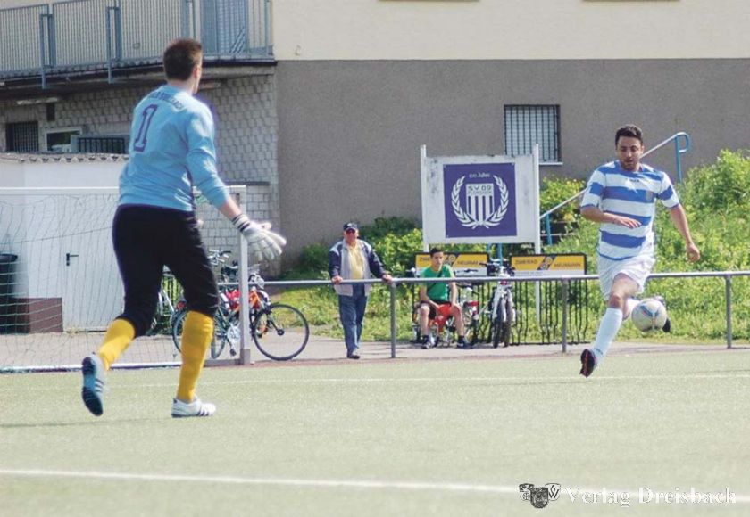 Die gute Ausgangslage von zwei Punkten Vorsprung verschafften sich die Blauen durch den Überraschungscoup am Sonntag. „Wir wussten, um was es geht und waren dementsprechend heiß auf den Sieg“, beschrieb der sportliche Leiter des SV 09, Murat Beycan, die Atmosphäre im Team vor dem Anpfiff. Diese übertrug die junge Flörsheimer Elf von Beginn an spürbar aufs Feld. Man spielte druckvoll nach vorne und ließ dabei in den eigenen Reihen nichts anbrennen. Nur das Toreschießen blieb das einzige Manko der ersten 45 Minuten, obwohl sich einige Möglichkeiten dazu boten.